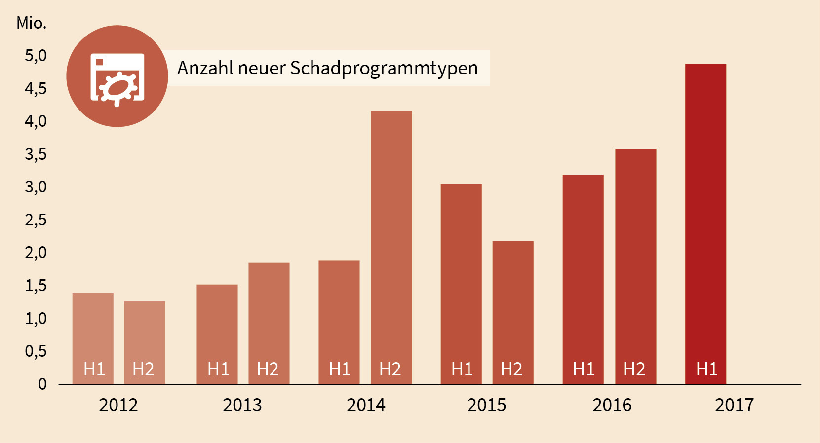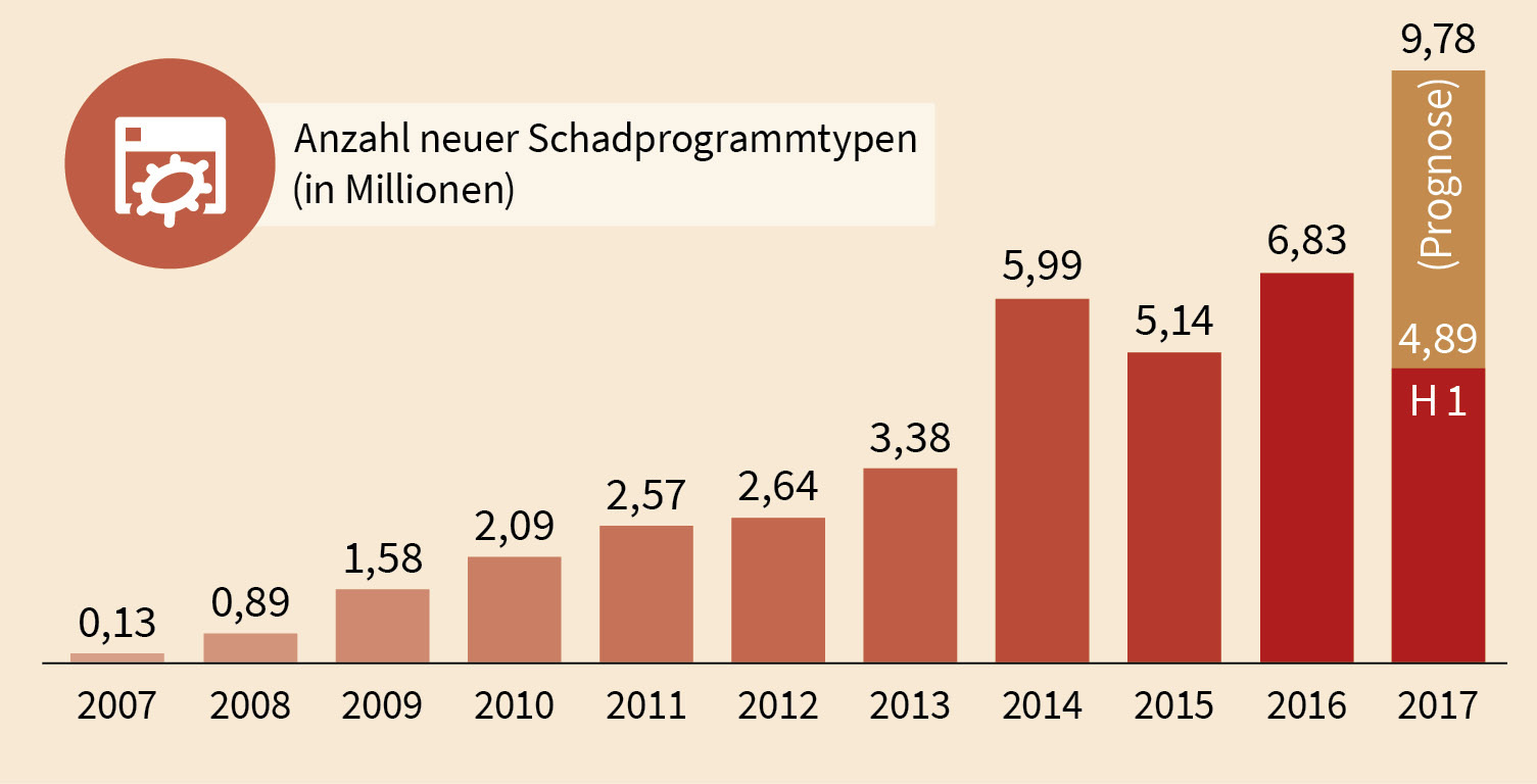 - Im Durchschnitt wurden im ersten Halbjahr 2017 pro Rechner 47,4 Angriffe verzeichnet.