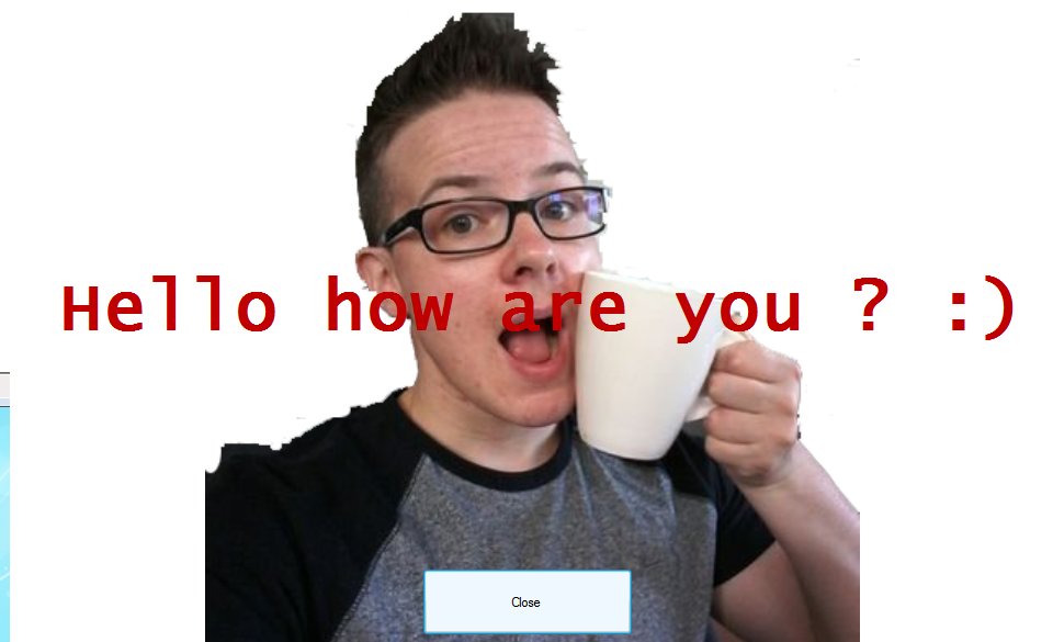 Ein genauerer Blick auf die Datei offenbart, dass der schädliche Code, der darin enthalten ist überhaupt nicht aufgerufen und ausgeführt wird. Die Datei ist völlig harmlos und richtet keinerlei Schaden am System an. Mit der Datei soll einzig und allein Aufmerksamkeit erregt werden. Wenn man die Datei ausführt, öffnet sich ein grob verändertes Bild aus Karsten Hahns Twitter Account. Es gibt einen Button zum Schließen des Fensters und eine Nachricht: "Hello how are you ? :)"