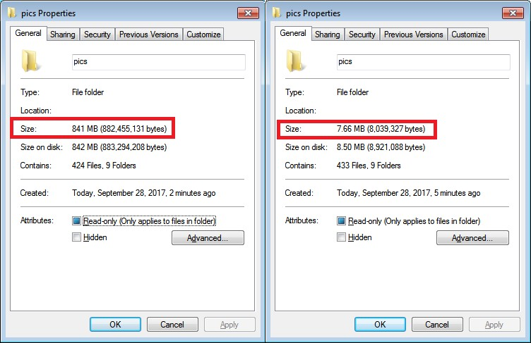 Nach weiteren Analysen steht nun fest, dass Ordinypt mehr ist als nur eine weitere Ransomware. Dateien, die augenscheinlich verschlüsselt wurden, sind nach Abschluss des Prozesses quasi "leer". Damit hat Ordinypt sich als eine Kombination aus Ransomware und einem "Wiper" (engl. wipe: auslöschen) entpuppt. Ein Testordner, der mit Bildern im JPG-Format gefüllt war, hat nach der "Verschlüsselung" plötzlich nur noch einen Bruchteil der ursprünglichen Größe.