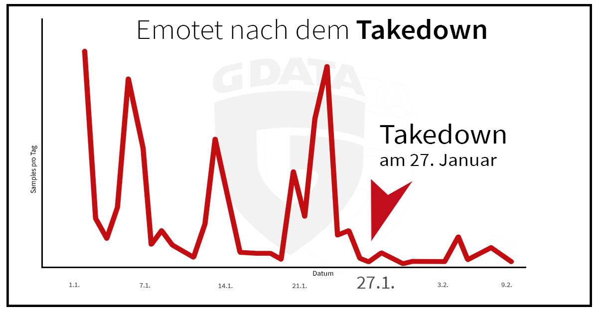 Eine Analyse von Telemetriedaten zeigt: Es dauerte nicht lange, bis Qbot hier die Schlagzahl massiv erhöht hat. Seit Februar 2021 beobachten wir bei G DATA eine stark erhöhte Aktivität der Kombination Qbot und CobaltStrike. Wir erinnern uns: Der Zugriff gegen Emotet erfolgte Ende Januar dieses Jahre. Es hat also nur wenige Tage bis Wochen gedauert, bis Qbot nachgelegt hat. Dass Qbot versuchen würde, sich hier an die Spitze zu setzen und in Konkurrenz zu Emotet zu treten, hat sich bereits in der zweiten Hälfte des Jahres 2020 abgezeichnet. Dort tauchte Qakbot erstmals in den Top 10 der gefährlichsten Schadprogramme auf. Zahlen von Malwarebytes zufolge stellt dies einen Zuwachs von 465 Prozent gegenüber dem Vorjahreszeitraum dar.