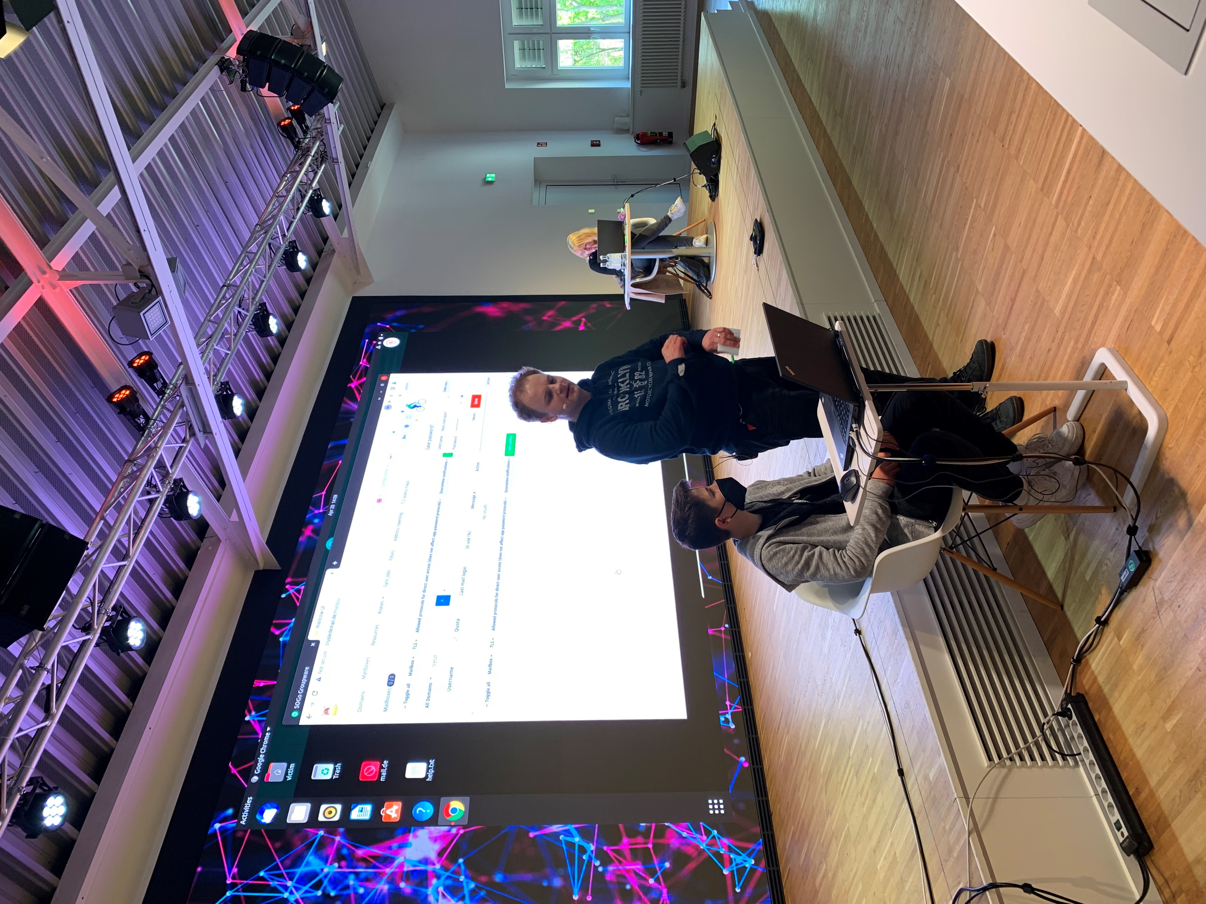 Den Abschluss des Tages bildete das Live-Hacking – eine simulierte Phishing-Attacke. Dazu trafen sich alle Schüler*innen in der G DATA Eventhalle, in der Dr. Matthias Zuchowski, Head of Project Management Office (Security Solutions), und Werksstudentin Kira Höltgen bereits alles vorbereitet hatten und auf der Leinwand einen für alle sichtbaren Computerbildschirm projizierten. Nachdem schnell ein Freiwilliger gefunden war, blendete Kira auf der Bildschirmpräsentation die Einrichtung eines neuen E-Mail-Postfachs ein. Der Jugendliche erstellte sich einen Account mit seinem Namen und bekam live eine Nachricht in das frisch eingerichtete Postfach. Sehr verlockend, denn es handelte sich um einen 50-Euro-Steam-Gutschein. Die Farben, das Layout – alles passte und sah seriös aus. Zum Einlösen musste die Eingabe der Daten erfolgen – in dem Fall der Benutzername und das Passwort –, was der Schüler kurzerhand tat. Auf einen Gutschein verzichten? Ein klares Nein!