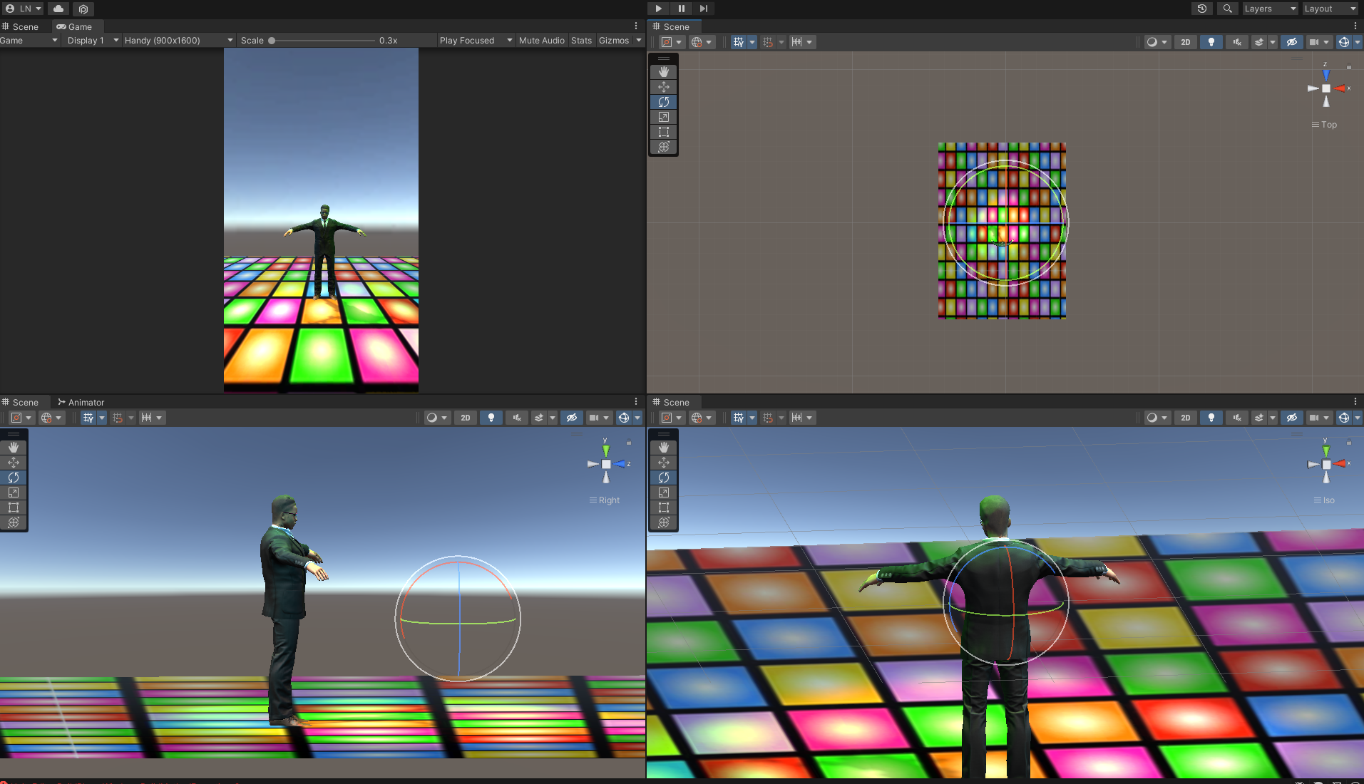 Ist das Ergebnis zufriedenstellend, kann der fertig modellierte Kopf einen Körper bekommen. Dazu griffen Michael und Luca auf bereits fertige Avatare zurück, die es im Netz zur freien Verfügung gibt. Diese Körper sind bereits animiert. Der Kopf konnte einfach gegen einen anderen ausgetauscht werden. Die Datei aus dem 3D-Editor (im *.FBX-Dateiformat) enthält alle wichtigen Informationen, wie die Hülle, die Textur, die sogenannten Knochen und die Animation. Diese Datei wird dann in das Programm Unity hochgeladen. Unity ist eine kostenfreie Entwicklerumgebung, für die Gestaltung von Computerspielen. Viele bekannte Spiele wie etwa Among Us oder Pokemon Go wurden in Unity entwickelt. Hier kann der Hintergrund angepasst werden – so bewegt sich der Avatar von Louisa am Strand, Sarahs Avatar kniet sich hin und Obiris Avatar tanzt Breakdance in der Disco.