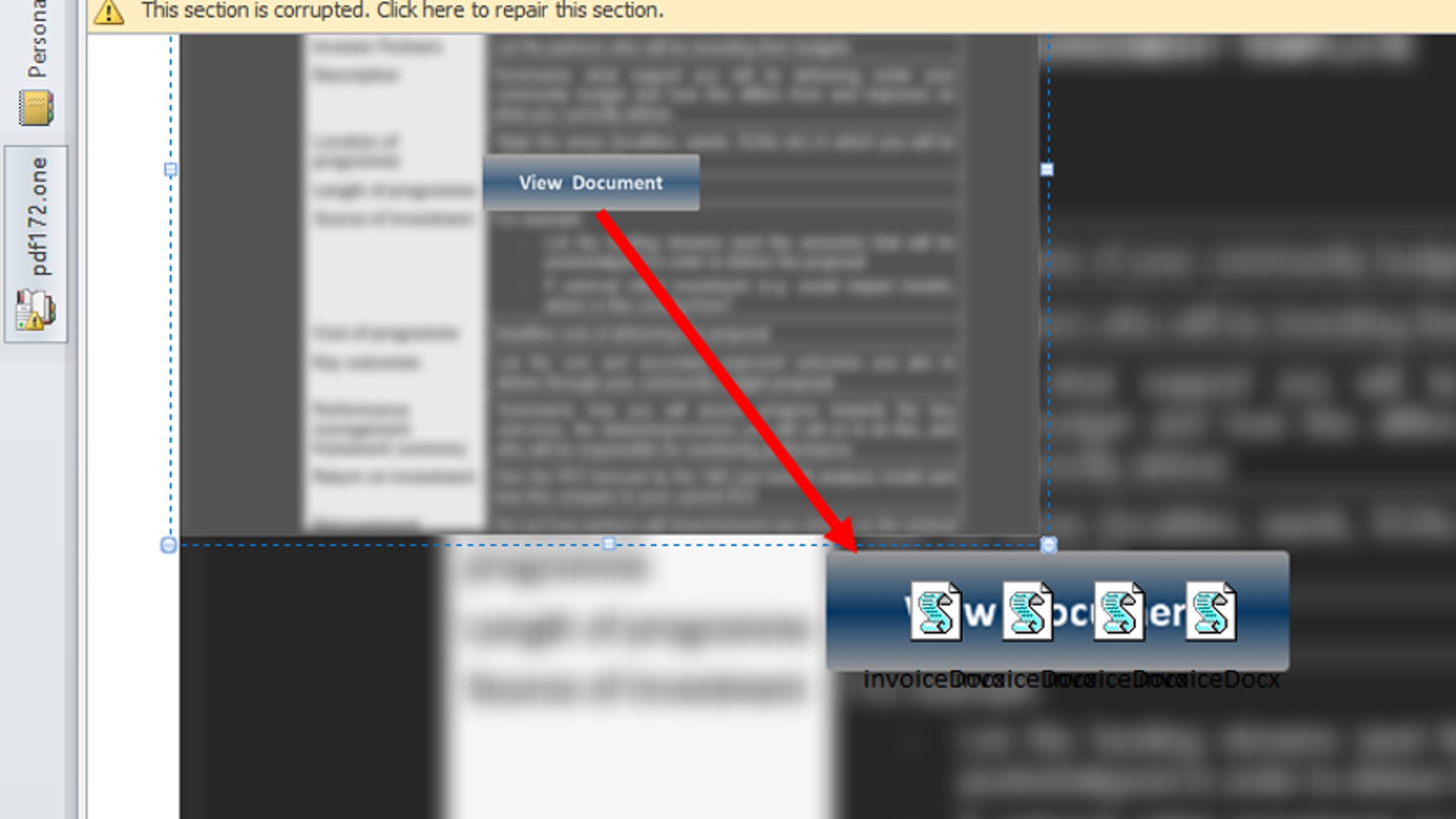 OneNote-Dateien und die bekannten Office-Dokumente unterscheiden sich in einem wesentlichen Punkt. Mit der OneNote-Masche sparen Kriminelle ihrem Opfer einen Schritt. Bisher waren Täter in einem Punkt auf die Mithilfe ihrer Opfer angewiesen: Das Opfer musste zuerst die Datei öffnen und dann von Hand den Schutz vor Makros mit einem Klick deaktivieren (Siehe Abbildung). Dieser Schritt entfällt mit der aktuellen Masche. Dabei hilft den Tätern eine Eigenschaft der OneNote-Dateien. Innerhalb dieser Dateien lassen sich nämlich eingebettete Dateien hinter grafischen Elementen verstecken – wie etwa einer Schaltfläche, die zu einem Doppelklick auffordert (Siehe Abbildung). Diese Aktion ist Nutzenden vertraut, denn ein Doppelklick öffnet Dateien. Statt jedoch die vermeintliche OneNote-Datei zu öffnen, startet der Doppelklick direkt eine ausführbare Datei, welche die eigentliche Schadsoftware herunterlädt und das System infiziert. Genau so als würde man im Windows-Explorer eine normale Anwendung öffnen. Es ist also nicht mehr notwendig, Makros erst von Hand zu aktivieren und dabei eine Warnmeldung wegzuklicken.