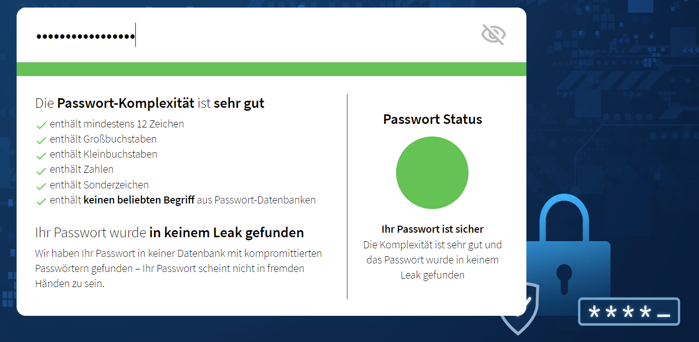 Im Idealfall sollte der Passwort-Check nach Eingabe des Kennworts daher wie folgt aussehen: