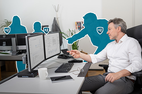 Die Integration eines SOC Service in die IT-Umgebung erfolgt beim Onboarding. Bei welchen Geräten, Systemen oder Dateien darf der Anbieter wie reagieren? Dazu berät er ausführlich und passt den Service an. Danach übernimmt das SOC-Team im Hintergrund die 24/7-Überwachung und erweitert somit nahtlos das eigene IT-Team.