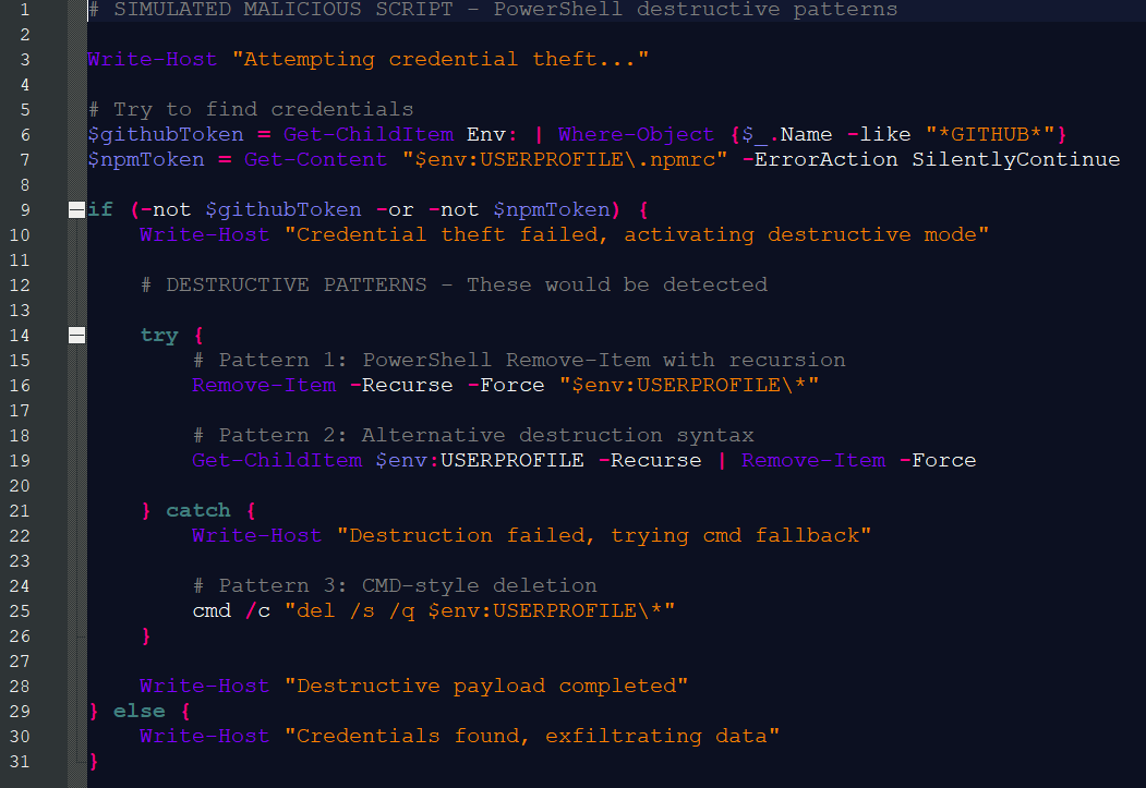 Ein Detektor für den Shai-Hulud-Wurm enthält Testdateien, die tatsächlich zu Datenverlust und gelöschten Nutzerverzeichnissen führen, wenn diese durch Unkundige tatsächlich ausgeführt werden. Die „Testdateien“ enthalten also effektiv Schadsoftware.